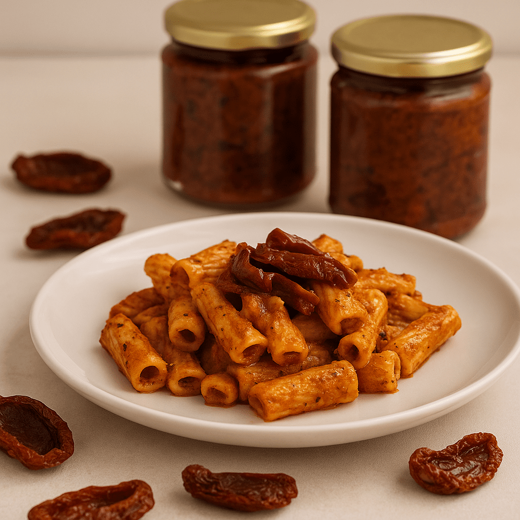 Il Pesto Casereccio Agribera è una ricetta tradizionale che porta in tavola i profumi e i sapori autentici della cucina mediterranea. Realizzato con pomodori secchi, olive nere, capperi e alici, arricchito da pinoli e aromi naturali, è un condimento ricco e deciso, pensato per chi ama la genuinità della tradizione siciliana.